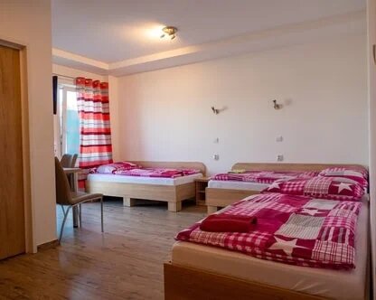 Dvoj-lôžkové izby s možnosťou prístelky. Každá izba má: samostatný vchod, WC a sprchovací kút, chladničku a TV, možnosť ubytovania aj v 2-3 lôžkových izbách. K dispozícii je spoločná kuchynka.
